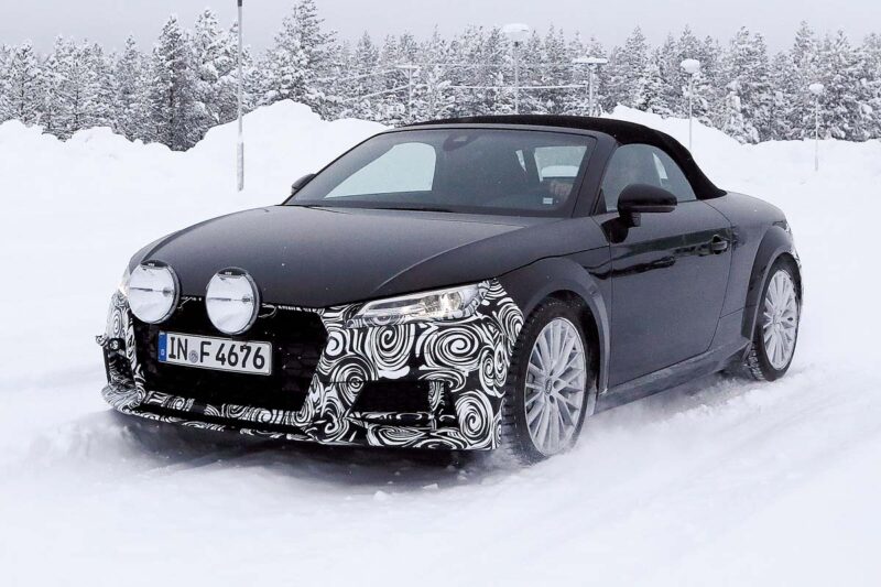 Audi TT才剛推出不久只是小改款?雖然Audi TT好像才剛推出不久,但對研發團隊來說,該是為它準備小改款的時候了,同樣在極圈拍到的照片,顯示了僅有前後保桿加上了偽裝,這意味著外觀部分的更動幅度不會太大,而在動力系統部