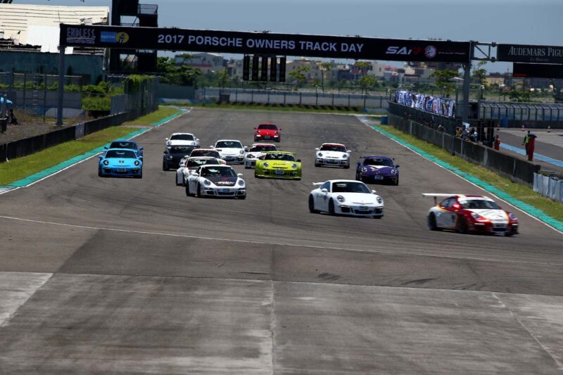 青蛙大軍集體壓境大鵬灣既然是性能跑車,若是沒有到賽場上盡情奔馳,感覺上就像埋沒車子本身天賦異稟的長才,同時也讓熱情的車主少了點「滿足感」,為此今年Porsche GT3 Club Taiwan與Option Cup聯合擴大舉辦Porsche Owners Track Day,藉由