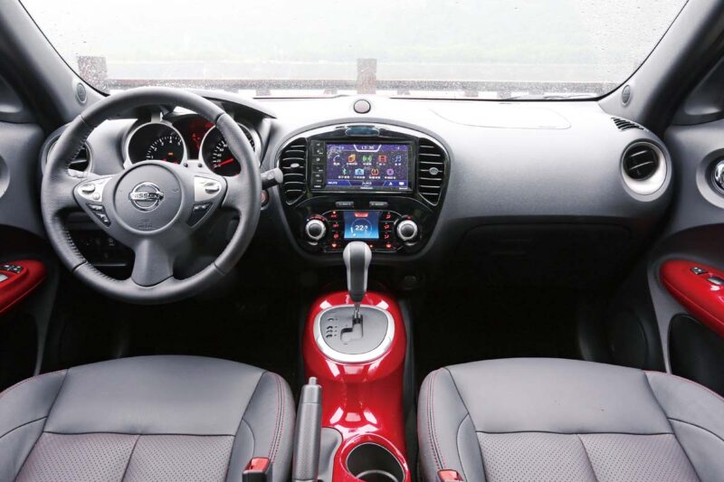 以造型吸引目光Nissan Juke 1.6豪華-跨界休旅車的最終決戰- 配備空間篇Juke(此次借車為渦輪車型,實際評比上則以自然引擎豪華版為主)內裝也延續外觀搶眼的設計,靈感源自於重機的排檔座與儀錶板設計,營造出不同於其他對手的獨特運動風格,不過座艙運用過多硬質飾板,雖具有一定品質但在對手多處採用皮質或軟質飾板設定下,相對無法突顯出優勢。