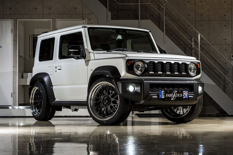 [專題企畫-全新Jimny改裝範本一覽] PART4. 20吋大腳的魅力 FABULOUS話題創造 !提到Jimny的改裝不外乎就是提高底盤,換上巧克力胎提昇越野能力占了九成九以上,不過這輛出自FABULOUS之手的Jimny則是完全相反,換上了20吋的大直徑輪框,從原廠越野風味滿點的外觀,