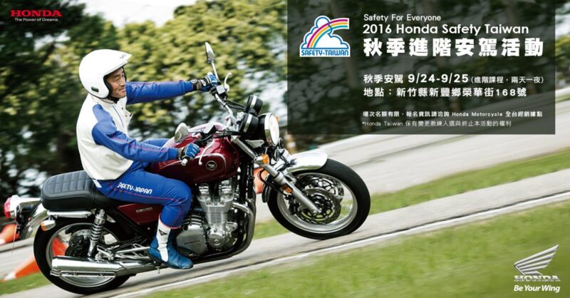 Honda Taiwan為秉持著「Be Your Wing」的品牌精神,以全系列的產品線、先進的旗艦店面與6S理念建立二輪事業與形象,致力提昇台灣的大型重機環境。而6S理念中的「Safety」扮演著售後服務中相當重要的一環,即代表著Honda的安全駕駛課程。