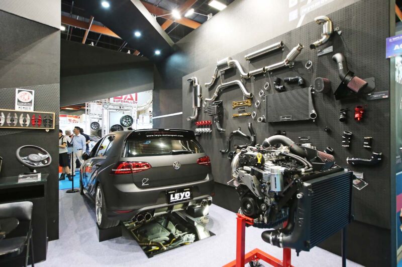 LEYO Motor Sport低調的台灣製作美國品牌這個品牌雖然總公司在洛杉磯,不過卻是一個來自台南小男生所打造的帝國,每年SEMA Show也都不缺席,將台灣高超的CNC技術透過品牌展現在國際間,其餘前置中冷器、強化矽膠管、排氣