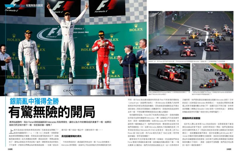 有驚無險的開局銀箭亂中獲得全勝澳洲站起跑時,兩台Ferrari紛紛超越兩部Mercedes而取得領先,讓你以為今年的賽局或許真會不一樣,結果到頭來仍然沒有什麼不一樣,但是真的都一樣嗎?上期不是說這次要報告季