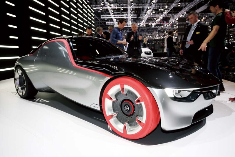 公升級小跑車Opel GT ConceptOpel GT是一款雙座、前置引擎後輪傳動的跑車,分別於1968~1973年(GT)與2007~2010年(GT Roadster)推出。而此次在車展上發表的GT Concept,不僅承襲前代諸多設計,同時更