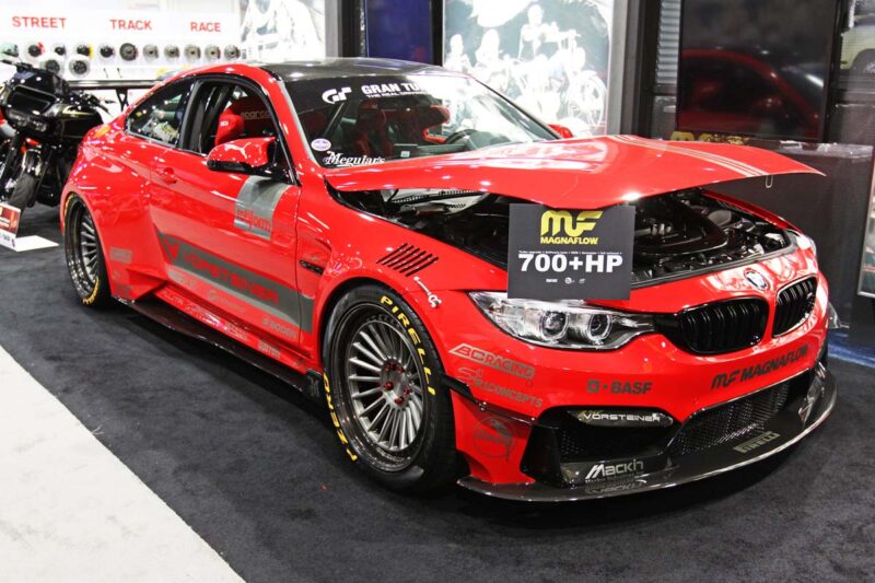 BC M Power越級挑戰 寬體加持受矚目其實筆者第一眼見到這輛寬體BMW M4時,一開始是受到大紅車色所吸引,然後走到車頭才看見掛上大辣辣的700hp,理論上這麼驚人的數據套在M4上其實有點令人質疑,S55B30