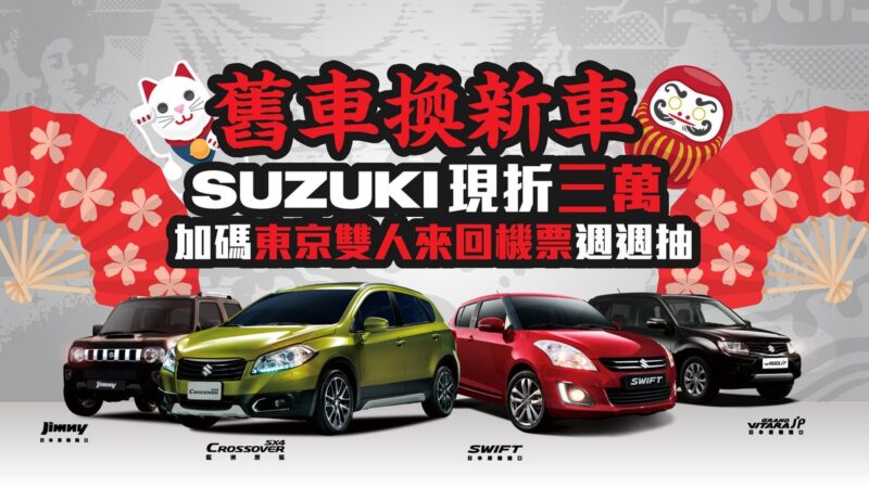 SUZUKI不限廠牌舊換新折三萬 東京雙人來回機票週週抽作者:cms-carnews