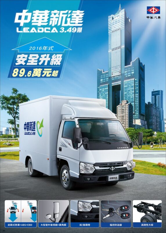 中華汽車為了感謝車主的支持,在產品上不斷精進與努力,希望給予眾多3噸半車主在行車載貨時,有最安全無虞的照顧。2016年式中華新達安全再升級,全車系搭載前碟式煞車及ABS(防鎖死煞車系統)/EBD(電子煞車力分配系統)…