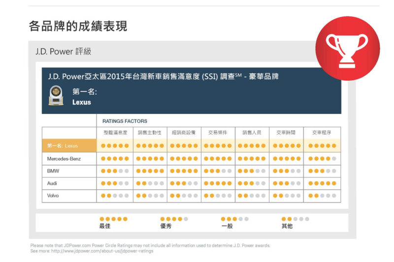 豪華品牌新車銷售滿意度 凌志(Lexus)再奪第一作者:cms-carnews