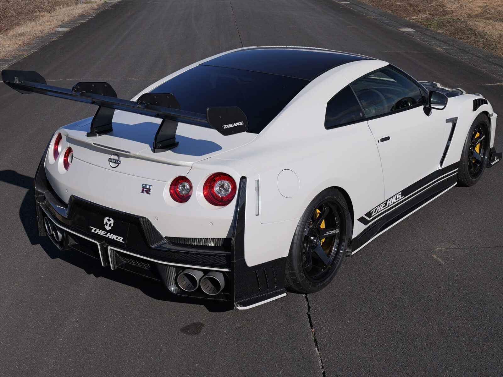 底盤控制由HKS HIPERMAX R避震器負責,並與原廠電子減震系統完美融合。橫濱ADVAN Racing GT輪圈和ADVAN A052熱熔胎,將車輛的強大性能轉化為清晰且易於掌控的抓地力,並由Nismo煞車卡鉗、碟盤和煞車片提供有力支撐。空氣動力學方面,專屬的上揚式乾碳纖維前擴散器,和配備DRS的大型尾翼,即使在普通GT-R開始顯得輕盈的速度下,也能確保車輛的穩定性。車內配備Nismo賽車椅、HKS 50週年紀念版TRS六點式安全帶,以及HKS專屬訂製細節,打造出與其旗艦地位相符的駕駛艙。