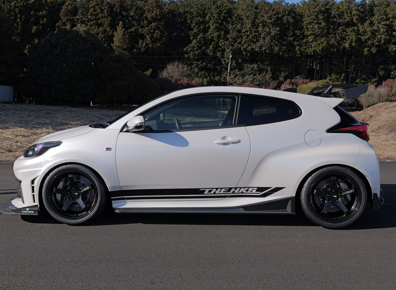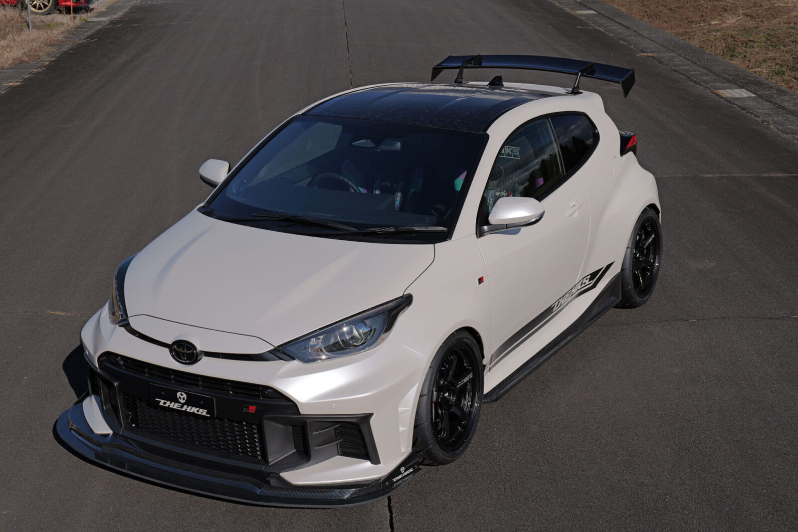 外觀部分,HKS Body Kit Type-S車身套件,包含了HKS前下擾流和尾翼,平衡了下壓力和阻力,確保高速行駛的穩定性。內裝部分,Bride ZETA IV固定式桶形座椅、HKS安全帶、Nardi運動方向盤和客製化內飾,打造出專注於極致駕駛體驗的駕駛艙。底盤部分,HKS Hipermax R避震器,搭配ADVAN A050輪胎和18吋×9.5J ADVAN Racing GT Beyond輪圈,進一步提升了GR Yaris本已十分激進的轉向反應和抓地力。