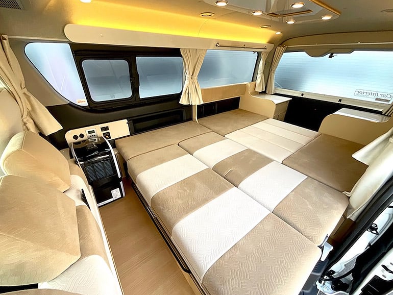 日本法律規範的露營車條件為每位成人就寢空間需超過1,800mm×500mm。依法律Relax Wagon Type 2可供三名成人就寢,但實際上的寬度比較適合兩名成人+一位孩童就寢。