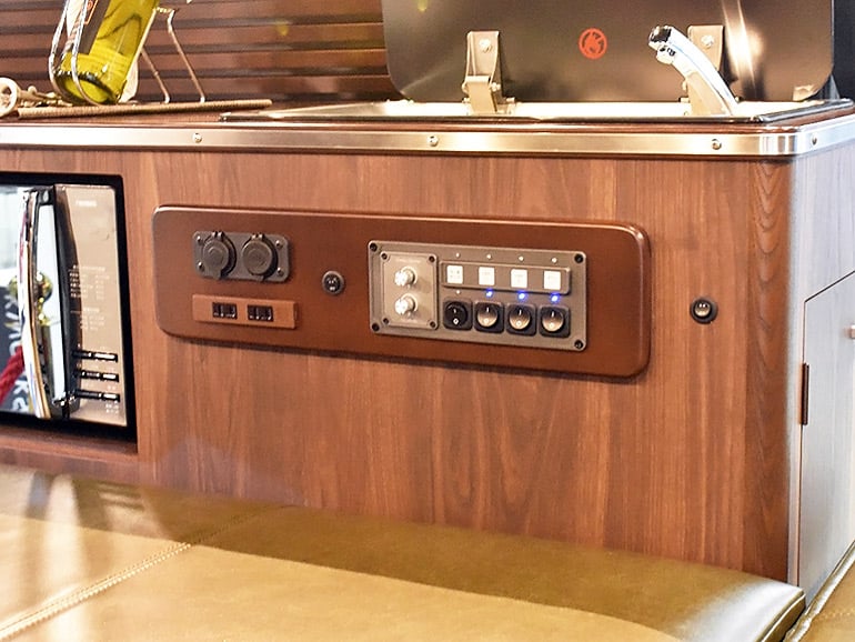 此外還標配310W太陽能板、2000W正弦波逆變器、副電瓶剩餘電量表、AC100V插座(2個)、12V點煙器插座、USB充電孔(2個)、外部電源系統、行駛充電系統等,幾乎涵蓋所有想得到的電氣配備。