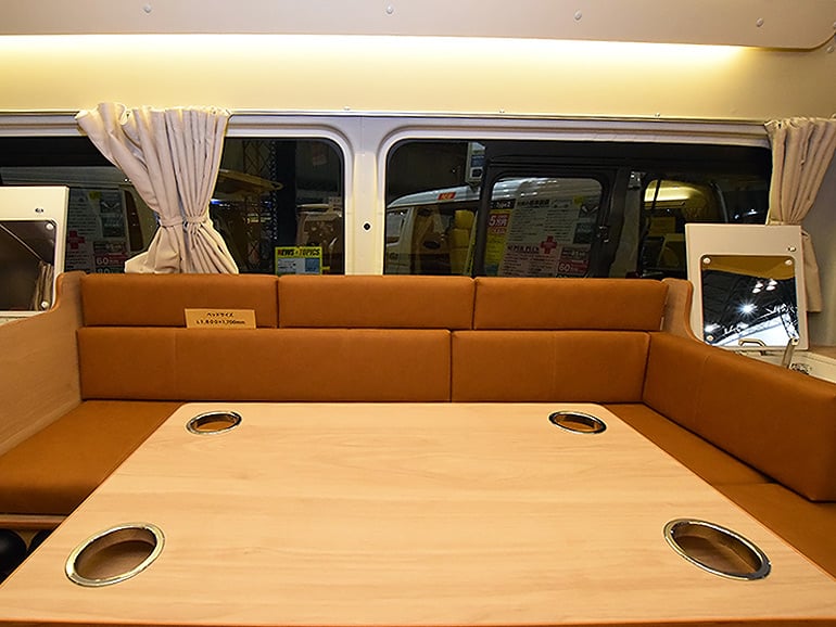「Grand Relax Wagon Infinity Plus1」的餐椅區可以作為1800mm×1700mm的床鋪使用,相當於家用加大雙人床。