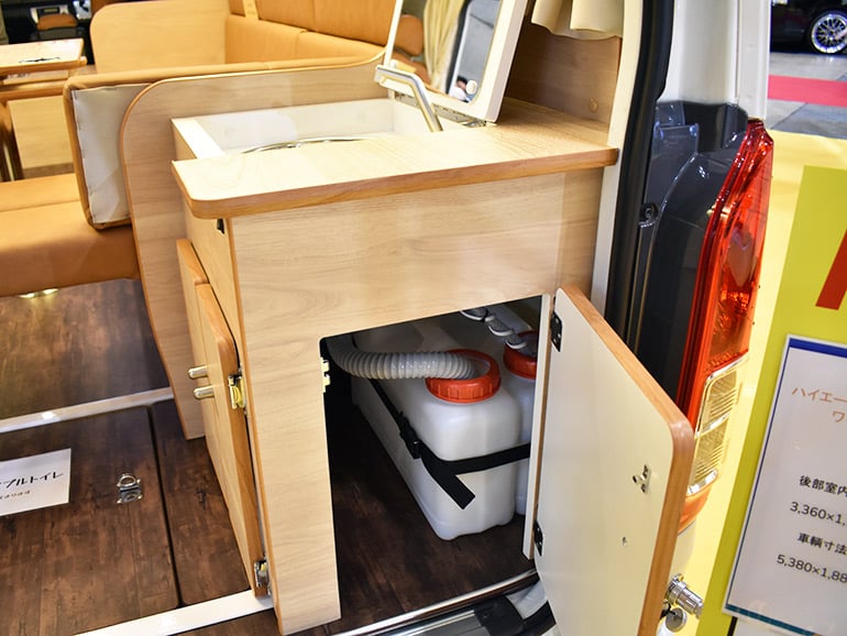 右側調理區下方設有12L的供排水水箱,可輕鬆打開尾門將水箱移至外側,非常方便。