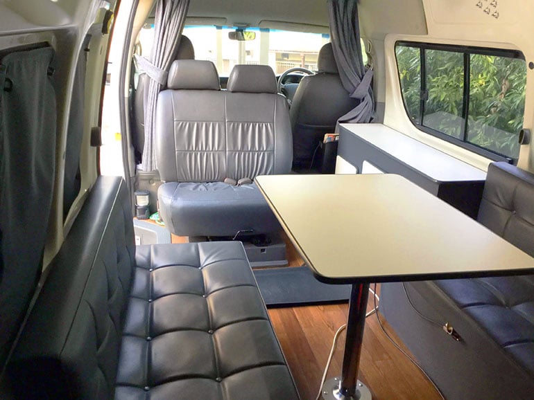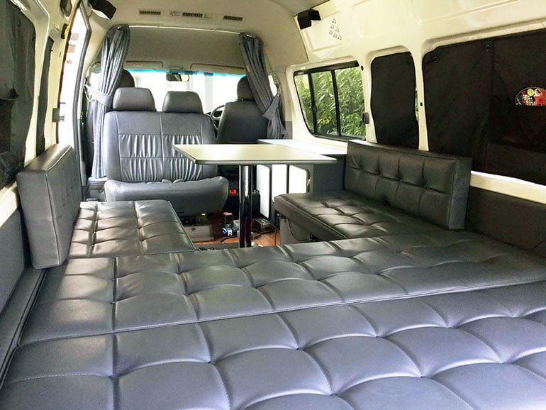 Hiace的原廠座椅在第二排和第三排座椅無法進行前後滑動或完全放平。要將其改裝為車宿規格,便需要更換第二排座椅及其後方的座椅。
