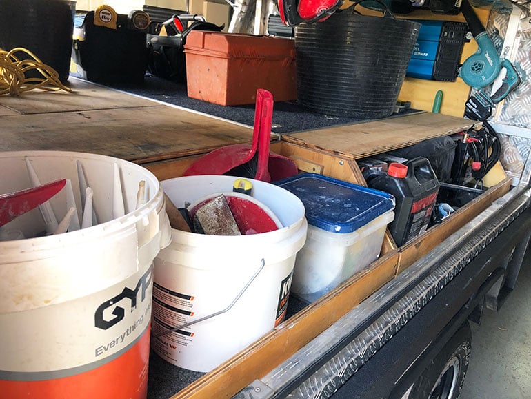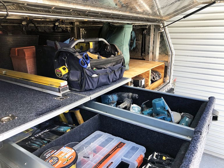如同前面提到的,平時車廂蓋內滿是工作用的工具,因此要切換成露營模式時,替換行李是一個令人頭疼的過程。