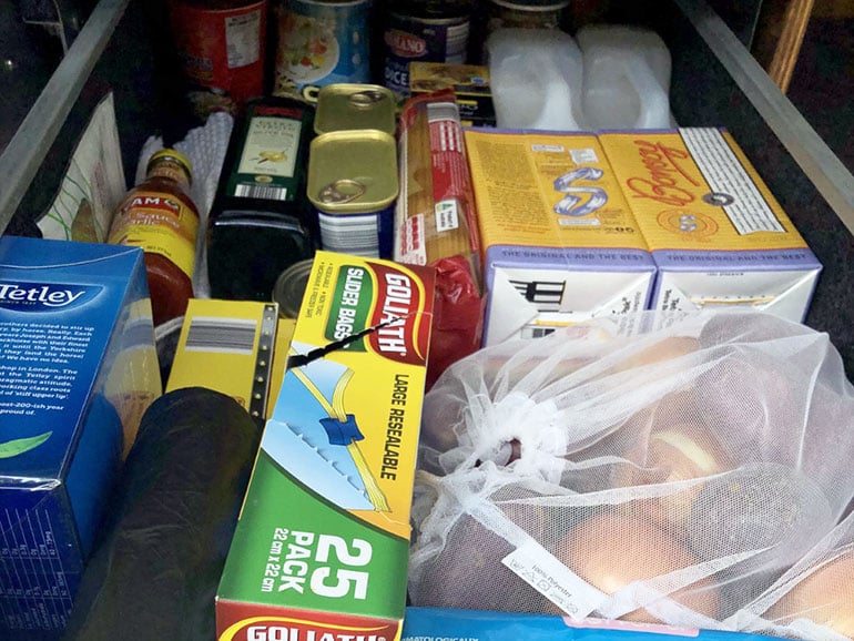 抽屜裡主要裝的物品是一些不需冷藏即可保存的食材及餐具。儘管高度有限,但因為深度足夠,取用起來一目了然,非常方便。