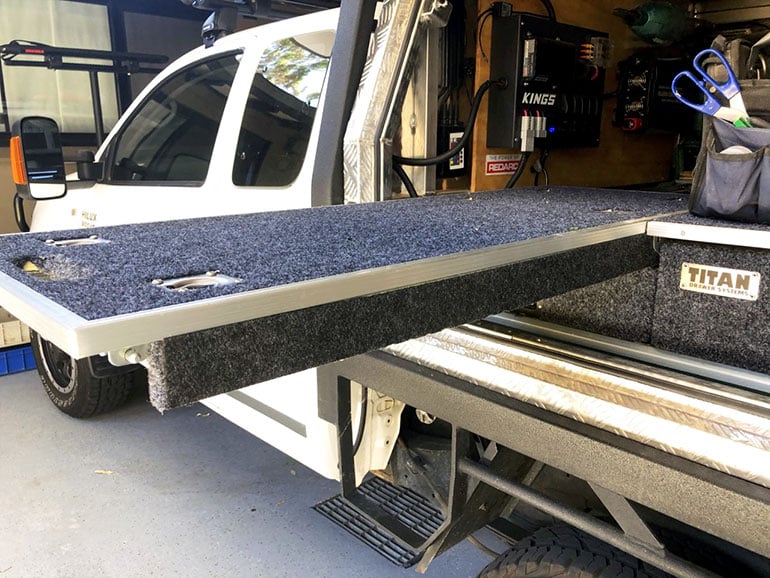 為此,筆者自製了一個抽屜式收納裝置,讓工作模式與露營模式之間的切換更加順暢。