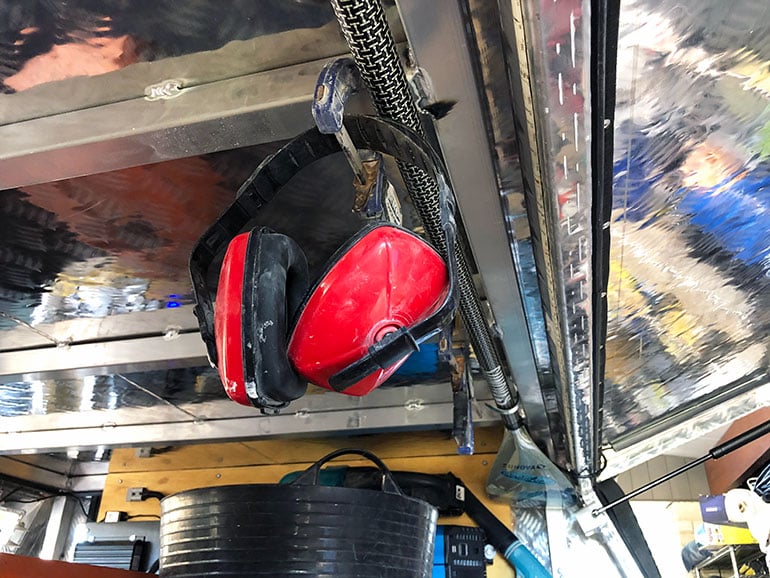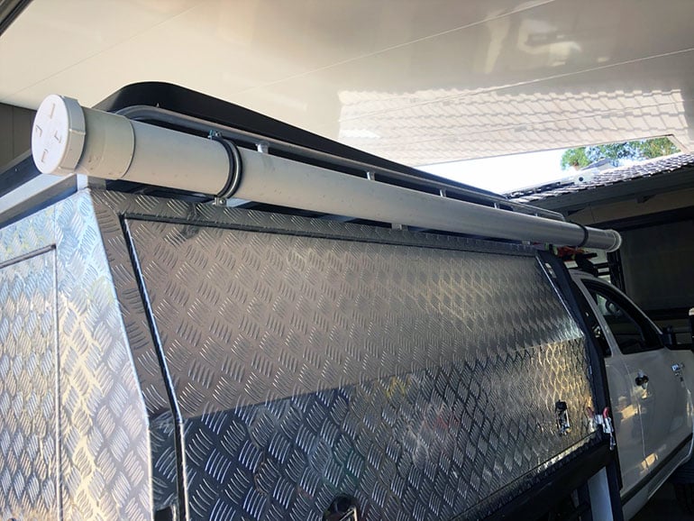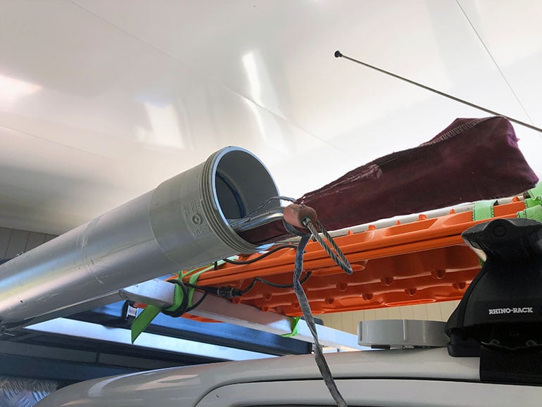 此外,車廂蓋上方側面裝了一個長約3m的管狀建材收納筒,這是利用排水管製作而成的。