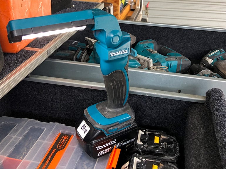 這些燈具是工具品牌的產品,其使用的電池與筆者的電鑽等工具為同一系列,因此露營時行李更少,而且不同工具之間的電池還可以互相備用,更加安心。