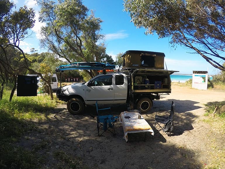 由於筆者已經有車頂帳,所以每次都不需要攜帶佔空間的帳篷,寢具也可以收納在車頂帳內,但每次搬進搬出各種零碎用品仍然非常麻煩。