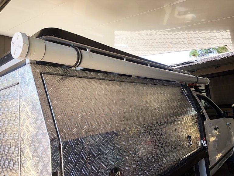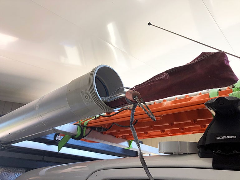 在日本或許不常見,但在澳洲利用排水管製作「建材收納筒」相當普遍,這是一種可以用來存放長條形物品的便利工具。筆者們用排水管製作了一個放置建材的收納筒,並將其安裝在車頂側面。