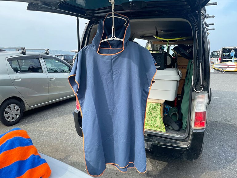 即使只是想在車內換掉濕衣服,披上斗篷再換衣服,也能有效防止把車內弄濕。