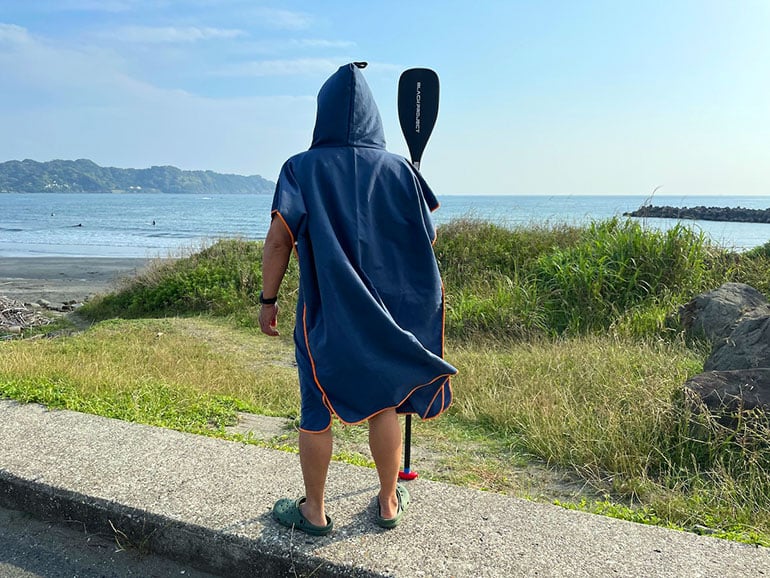 這原本是為了在戶外更換濕衣物時使用的,它類似行動更衣室。但其實這種斗篷不只是在換衣服時遮擋身體,對於換掉濕衣物也非常方便。