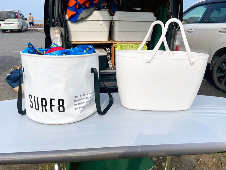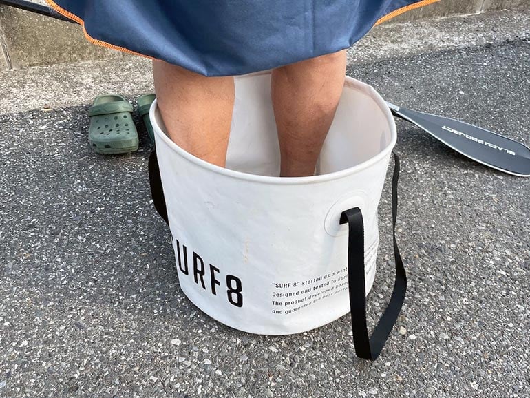 這個筆者以前的文章也介紹過,有個能裝濕物的大型防水水桶會非常實用。