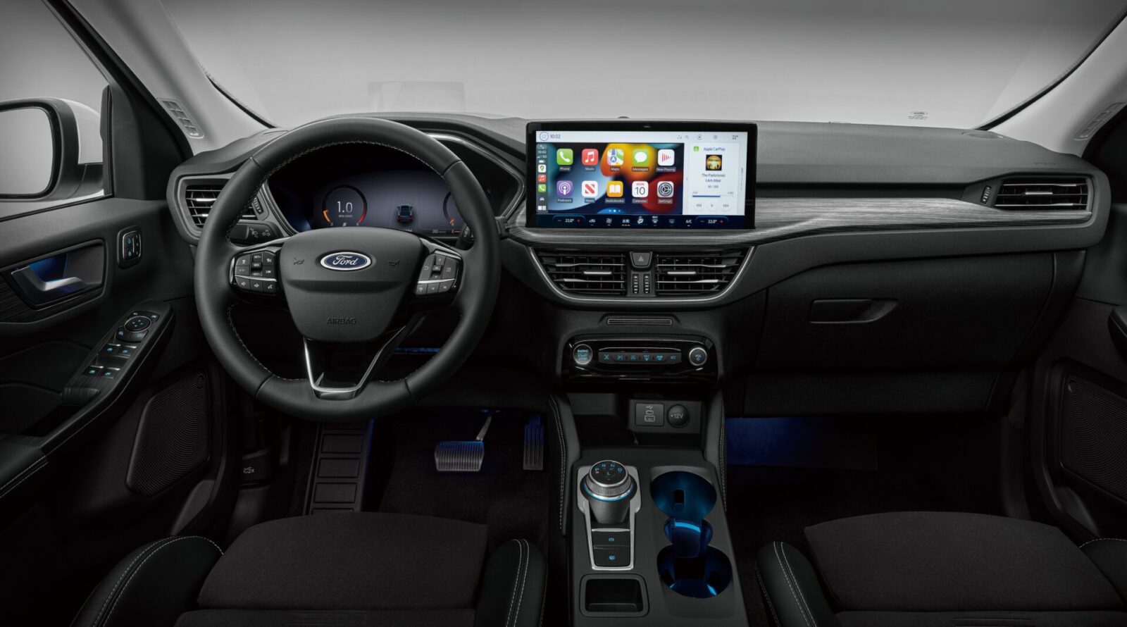 座艙內當然另有文章,Ford Kuga率同級之先全車系配置雙13吋大螢幕,其中13吋全彩數位化儀錶板導入全新Vision X系統並支援多重駕駛模式顯示,1.5T Active以上車型更追加HUD抬頭顯示器且支援導航顯示,至於中控台上的13.2吋懸浮全彩螢幕也搭載SYNC®4娛樂通訊整合系統,同步提供無線及有線Apple CarPlay® 、Android Auto™手機連線功能,全車系還標配360⁰環景影像系統,讓狹處停車、會車更顯便利且游刃有餘,另外配備上全新B&O 丹麥頂尖聲學環艙音響系統,帶來沉浸式劇院般的座艙享受。