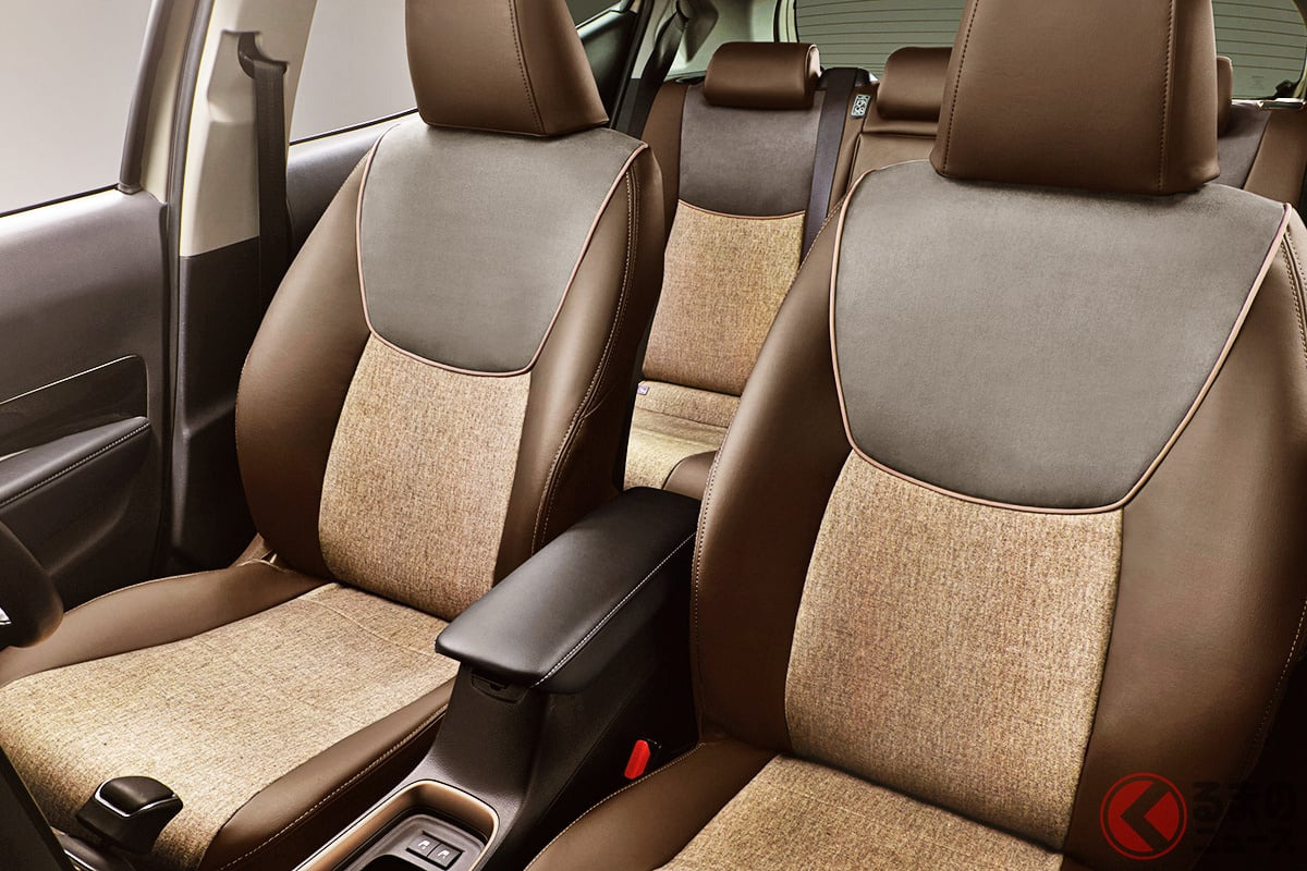 而在2024年4月的小改款時,追加了以頂規「Z」車型為基礎打造的特別仕樣車「Z Raffine」。Raffine在法語中意為「上質」,顧名思義,內外觀皆以專屬高級化設計呈現。車身顏色提供「深灰×清透米金屬」、「深灰×Urban Khaki」,以及專屬「黑色珠光×深灰」三款雙色塗裝。原本「Z」車型雙色塗裝需加價3萬3000日圓選配,Z Raffine則為標配。此外,車側後視鏡、車門把手、尾翼均改為深色或黑色塗裝,搭配環繞下氣壩的青銅色水箱護罩飾條與青銅色鋁圈,營造出溫潤典雅、質感滿點的外觀氛圍。