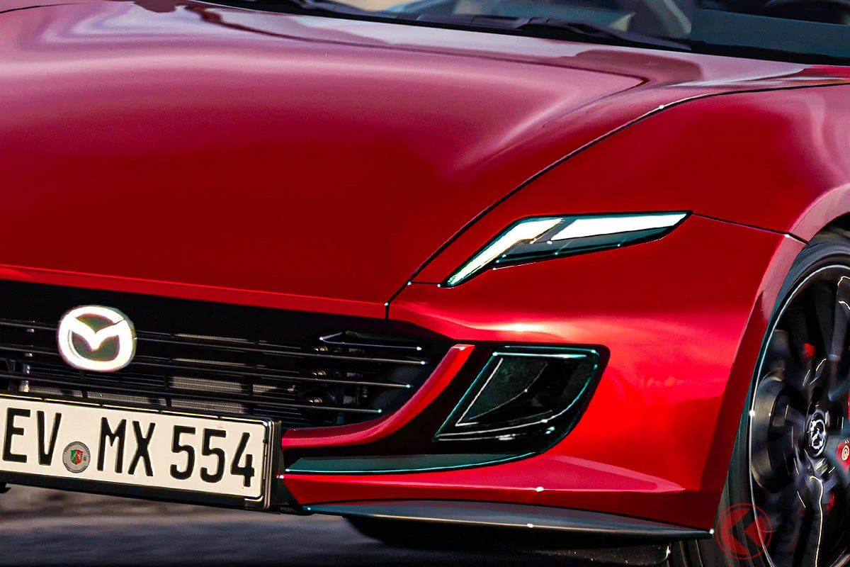 Larson Design 這次的渲染圖基於現行 MX-5 Miata 的經典造型,同時強烈展現馬自達未來設計語言。車頭採用類似「Iconic SP」概念車的銳利流線設計,整體姿態低趴,展現動感。尾燈設計雖向 Iconic SP 致敬,仍保留馬自達獨有的流暢曲線,完美平衡傳統與創新。車身尺寸未公開,但呈現典型輕量化運動跑車的緊湊比例,細節設計顯示出強烈空氣力學意識。