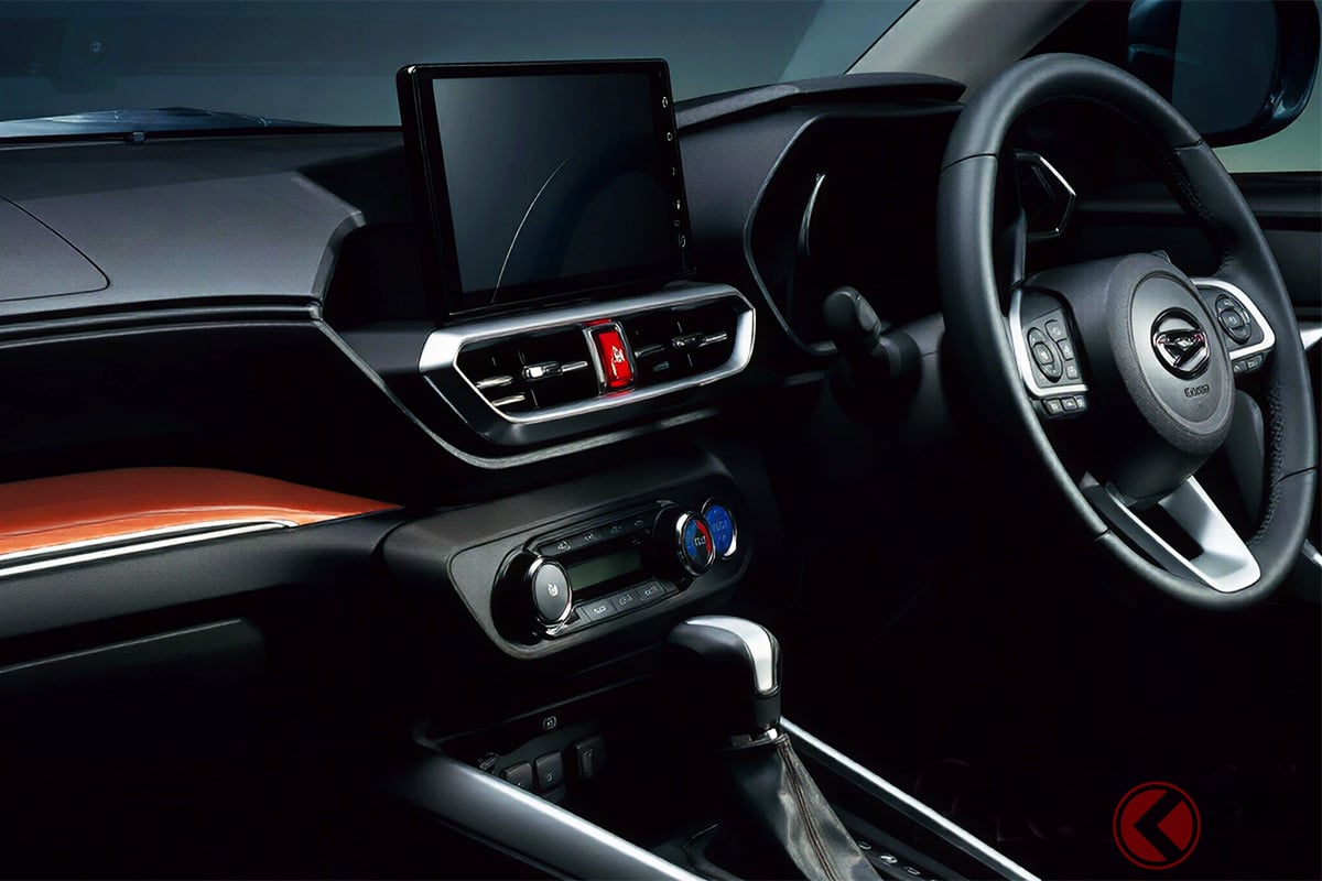 茶木紋×鍍鉻的設計,讓人聯想到昭和時代豪華車的厚重感,為 Rocky 現代化的內裝增添了沉穩的豪華感和復古氛圍,駕駛時想必會心情愉悅。