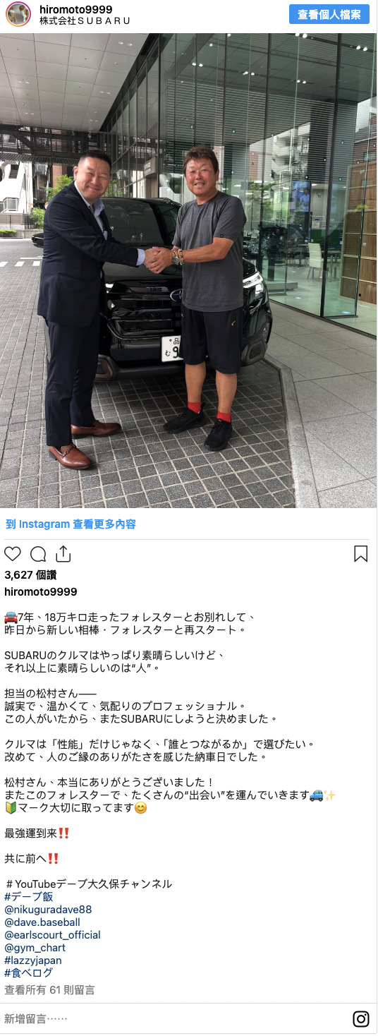 最多的留言是:「說到棒球選手,原本以為會開高級車或超跑,沒想到意外選擇 Subaru」「以為會換 Benz 或 Lexus,沒想到換 Subaru,好驚訝」,大家都異口同聲表示「好感」。