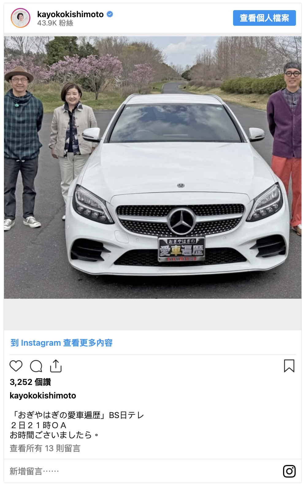 女演員岸本加世子在個人 Instagram 上更新貼文,公開了她的愛車。這輛受歡迎的高級進口車,也在社群媒體上引發了各種熱烈回響。