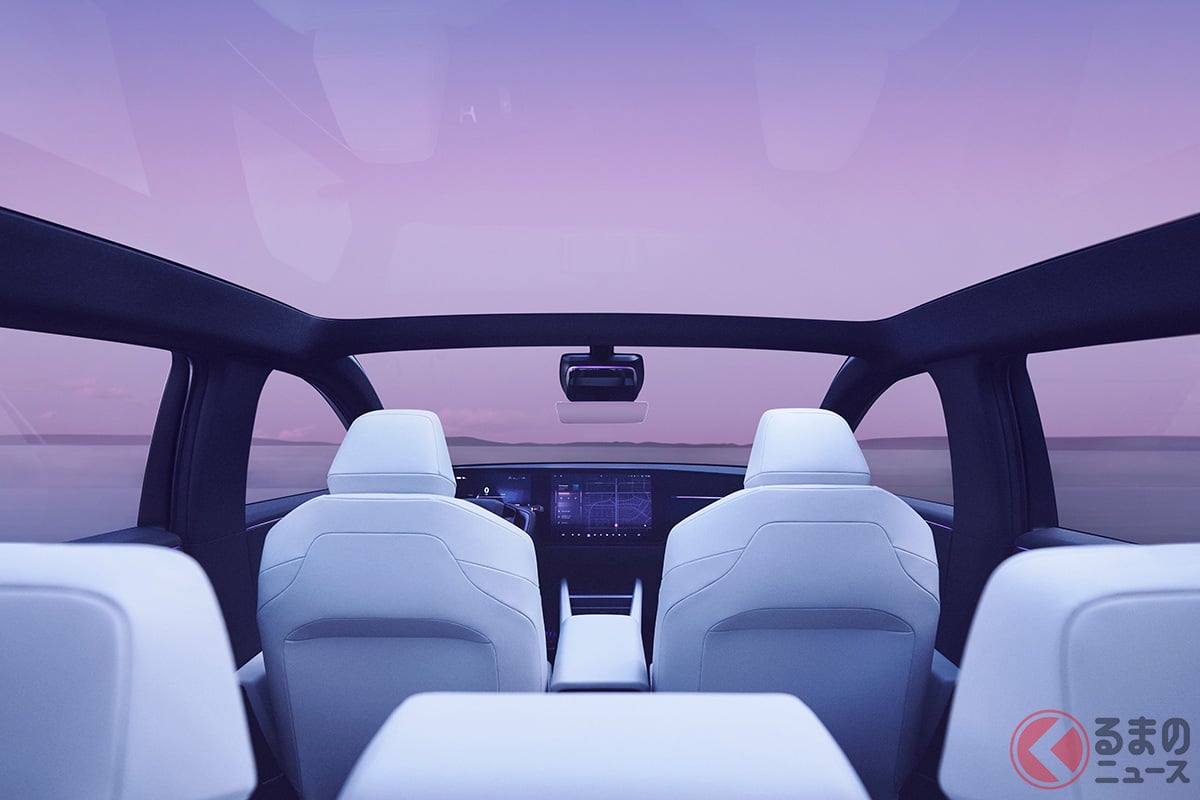 內裝方面同樣遵循「Thin, Light, and Wise.」理念,強調開放感,大面積玻璃車頂與大型顯示螢幕營造出未來感且舒適的乘坐體驗。