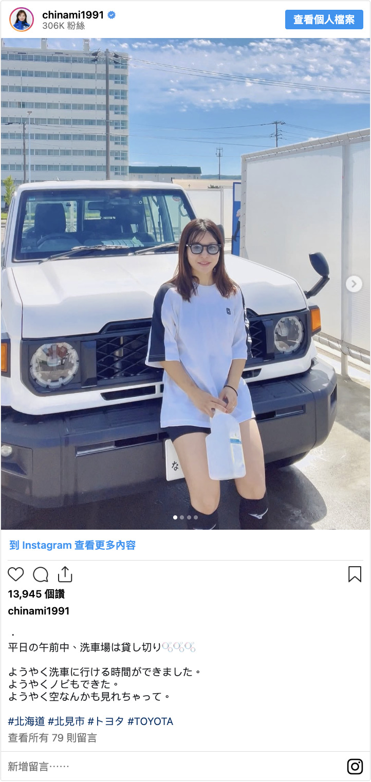 冰壺選手吉田知那美在 Instagram 上分享了她與愛車的合照。照片捕捉到洗車後,在藍天下那段清爽愉快的時光。
