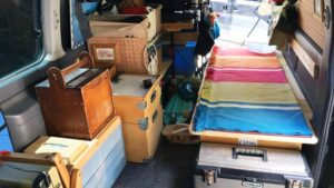 將後座背倒後,行李廂成為平坦地板,再把前座完全後躺,就能與後方平面連結。