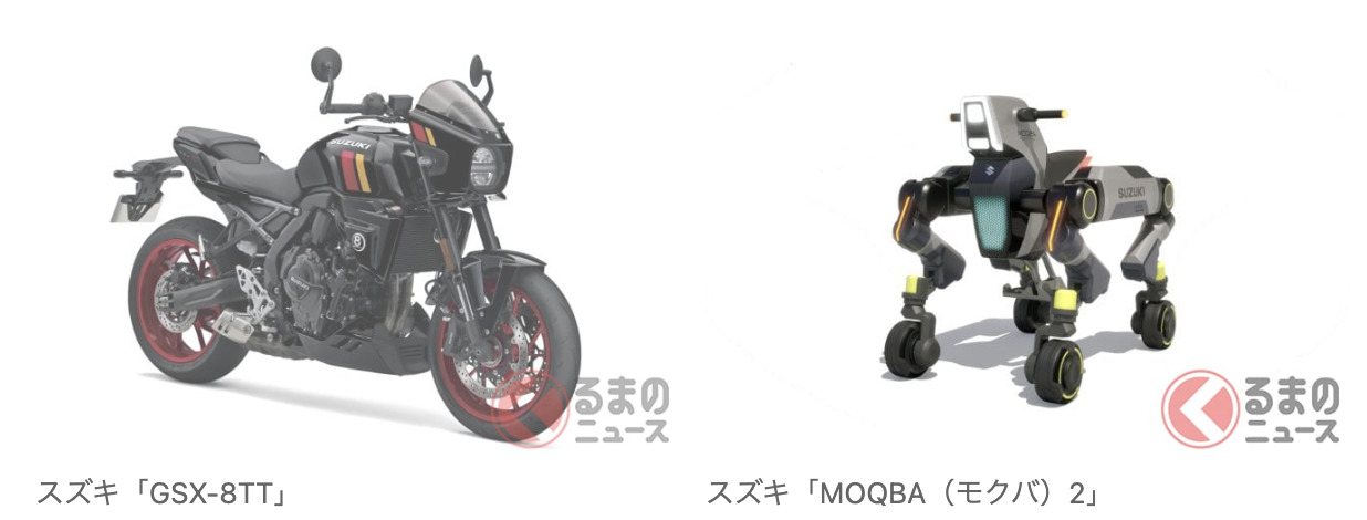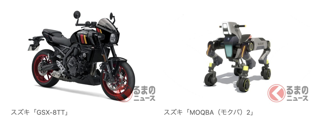這次展覽將全球首度公開以下車款:輕型乘用BEV概念車「Vision e-Sky」、二輪BEV概念車「e-VanVan」、次世代四足移動裝置「MOQBA(モクバ)2」、以及電動個人用移動裝置「SUZU-RIDE 2」。