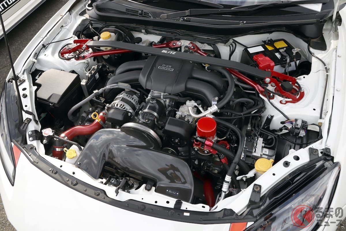 這輛與賽車手大湯都史樹共同開發、搭載原創空力套件的GR86,採用了BLITZ碳纖維進氣系統,以提升油門反應與扭力。