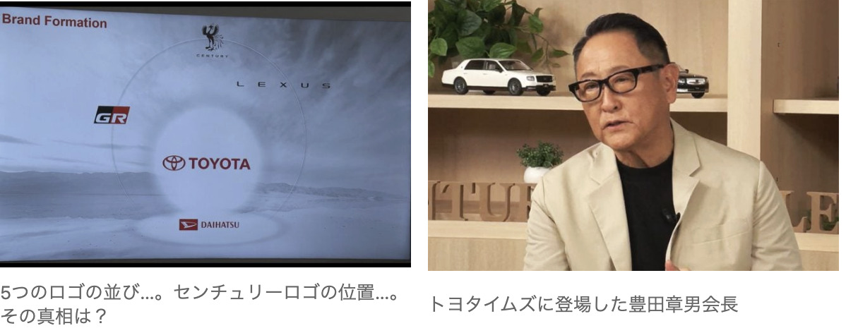 在預告中,「五個標誌」的排列引發討論,分別是「Toyota、Lexus、Century、GR、Daihatsu」。
