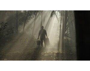 這輛保時捷「Taycan」全白光亮的車身能映照周圍景色,展現出Taycan特有的優雅質感。