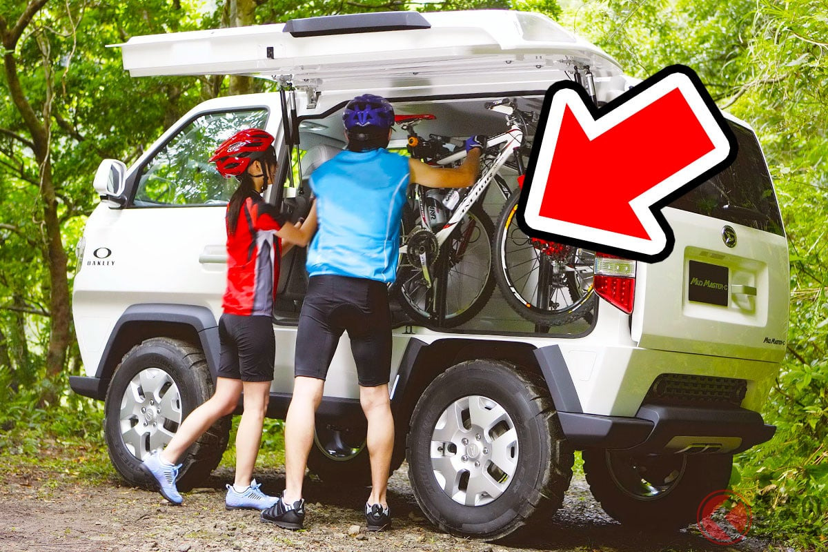 其最大特色,就是能根據用途或不同情境,更換貨台的模組化附掛式結構。透過這項設計,不僅適用於運動與戶外活動,也能在嚴苛環境下工作使用,成為極具創意的新型車款。實際展示車還搭載了方便搬運腳踏車的「三面大型鷗翼式車門」貨台。此外,MUD MASTER-C 的另一亮點就是超強越野能力。透過在傳動軸與輪轂連接處加入齒輪的「輪轂減速系統(Hub Reduction System)」以及粗大的16吋越野胎,使其擁有370mm 的最低離地高。
