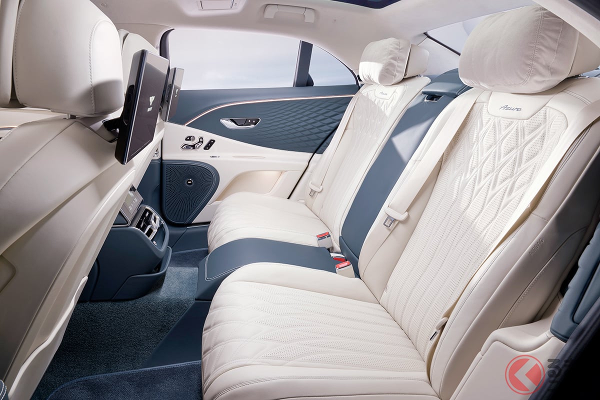 內裝方面,Azul專屬設計追求極致舒適感。手工精製Nappa皮革提供15種色彩選擇,座椅採用Harmony菱格絎縫,並使用高級永續木材與Dinamica材質,兼顧視覺、觸覺與聽覺的感受。前座24向可調座椅配備按摩與自動溫控功能,長途乘坐依然舒適。Flying Spur後座更搭載6段可調按摩、通風功能,以及可操作音響的無線觸控螢幕遙控器,讓後座乘員享受頂級禮遇。