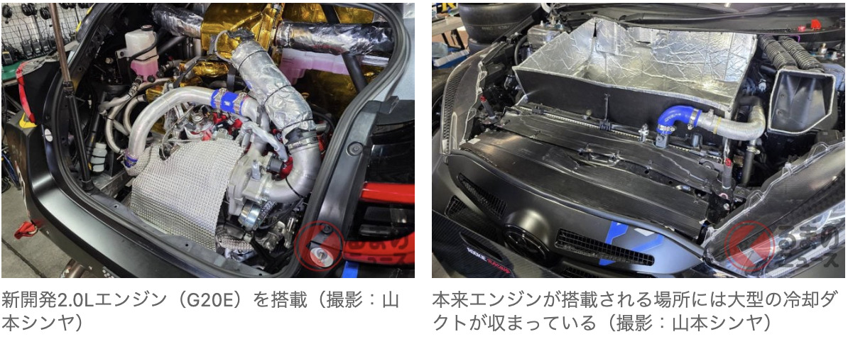 不過,當 Morizo 選手與佐佐木雅弘選手試駕後,他們深刻體會到,若要在紐伯林賽道上作戰,需要更輕、更快的 2.0L 引擎。基於這些車手的回饋,開發團隊決定將引擎升級為 2.0L。