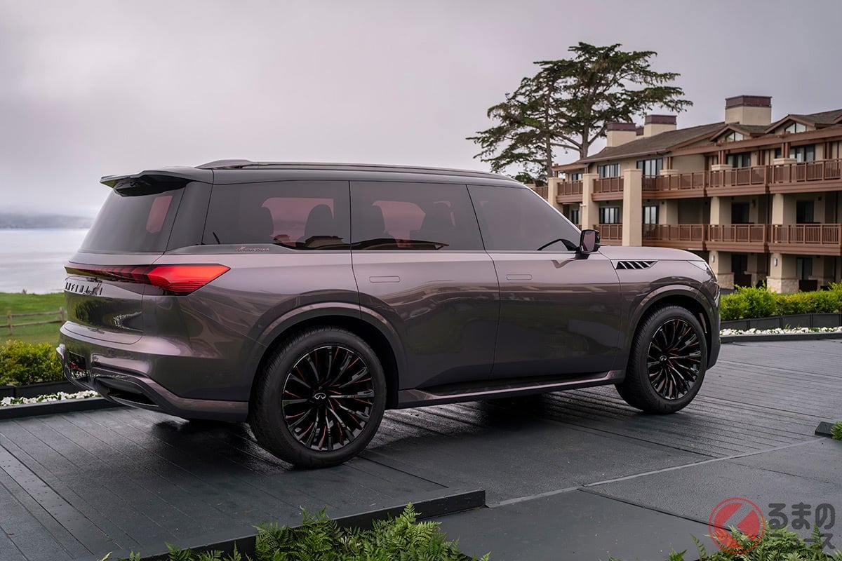 外觀設計採用強而有力的線條與明確的比例,造型相當大膽。整體風格與 2023 年 8 月全球首度公開的概念車「QX Monograph Concept」幾乎相同,可說是一台能夠實際在公路上行駛的概念車。