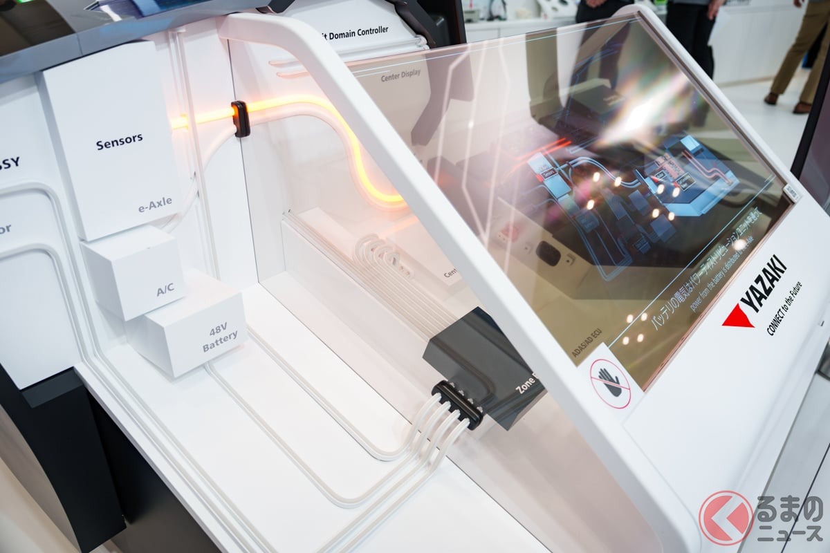 在 2025 年 10 月 30 日到 11 月 9 日於東京有明的東京國際展示場(Tokyo Big Sight)舉辦的「Japan Mobility Show 2025」中展出的矢崎總業,以「Be the Life Line.」為主題,展示了面向汽車領域、環境領域等多方面的各種技術。