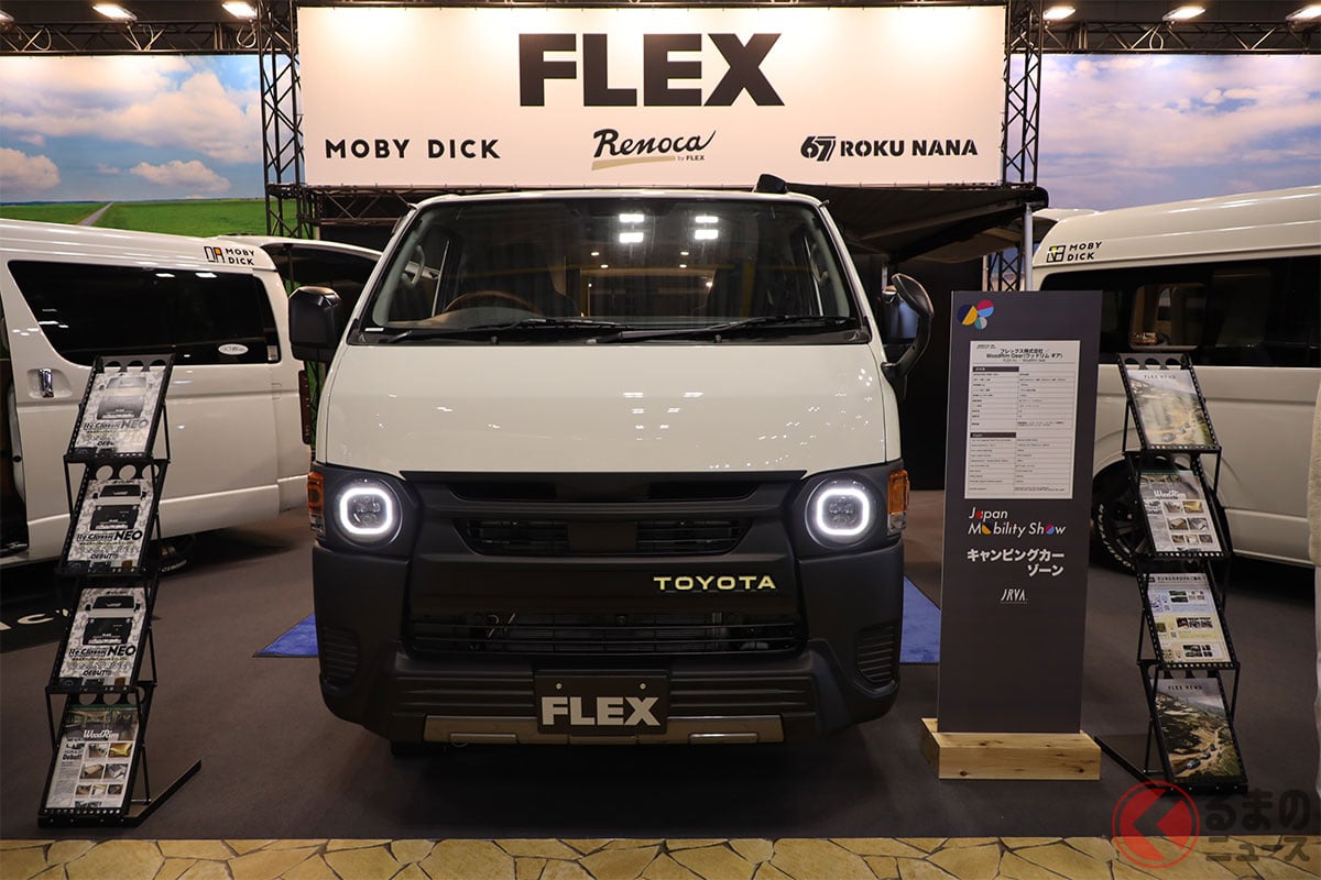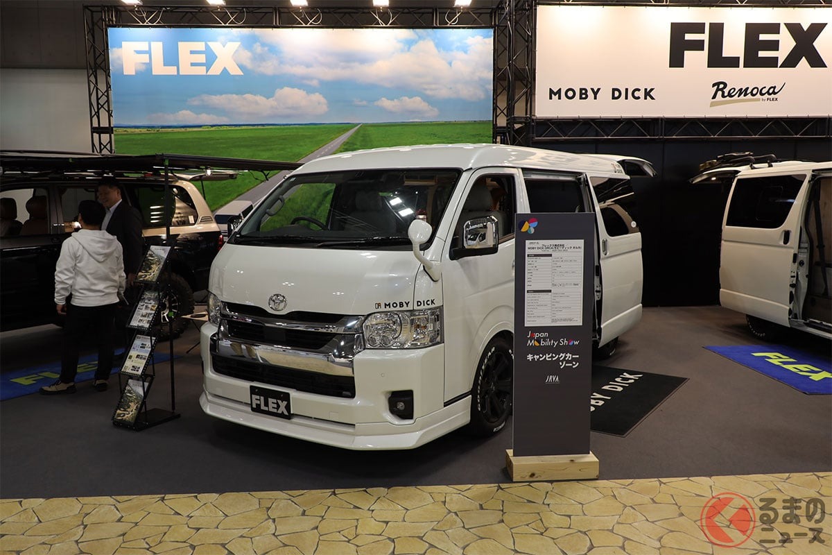 FLEX以Hiace為基礎打造的露營車「Moby Dick」系列也在展出,包括「Orca(オルカ)」、「Beluga(ベルーガ)」及「NH#01」等車型。