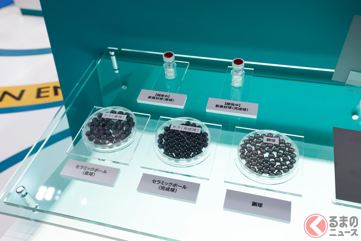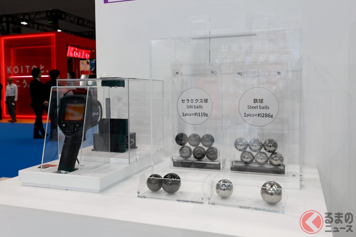展區中另一個可以親身體驗的展示,是公司推出的陶瓷軸承球產品,兼具環保概念,旨在創造對環境友善的未來。相較於鋼球,它更輕巧、剛性高,且具有優異的絕緣性能,因此非常適合用於 EV 馬達或風力發電機的電蝕(因電流造成物質損害)防護。