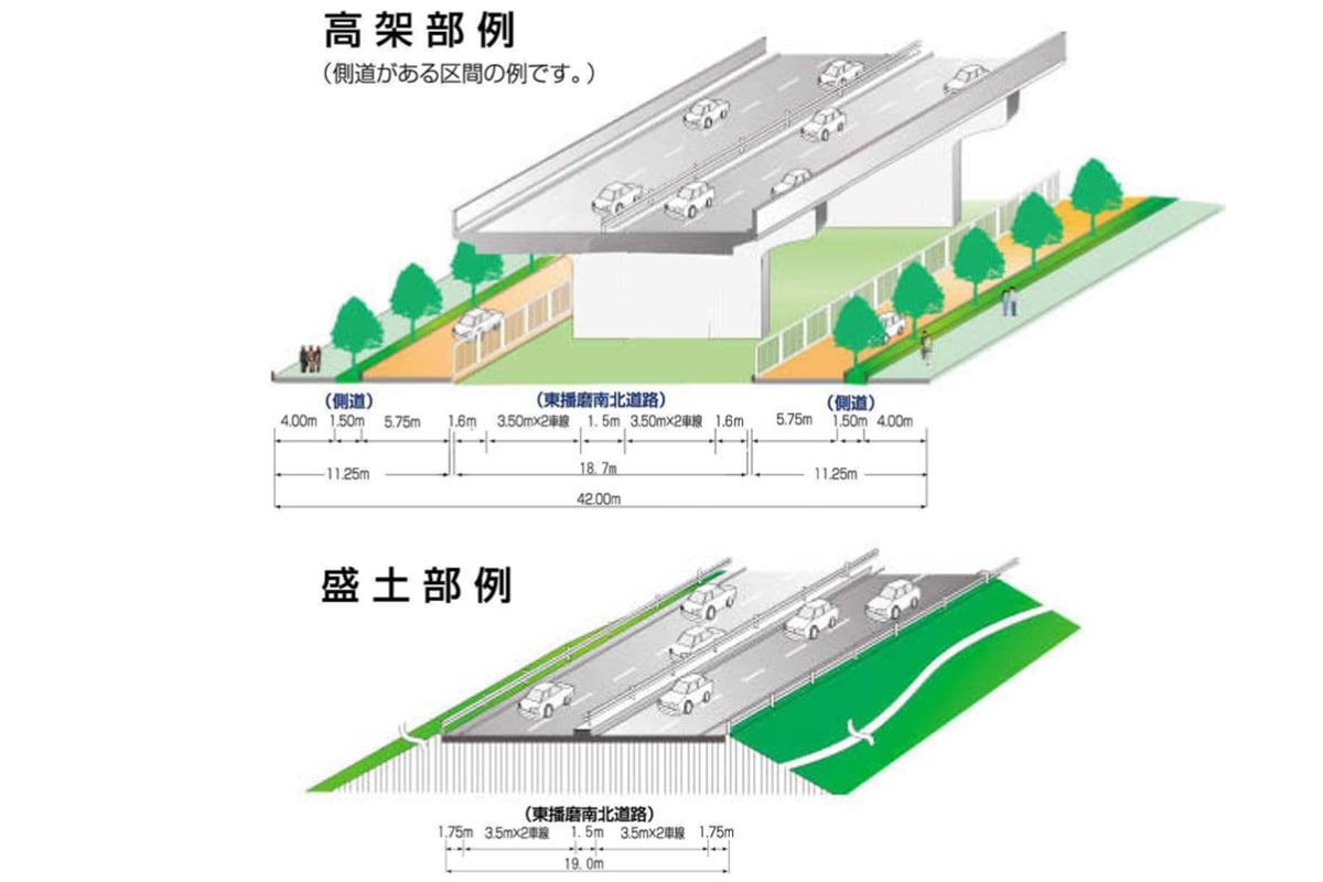 在兵庫縣的廣域道路整備基本計畫中,東播磨南北道路被定位為促進交流型的「區域高規格道路」,具有重要地位。南北貫通東播磨與北播磨地區,可加強區域間連結,支撐以加古川流域為中心的一體化區域發展。